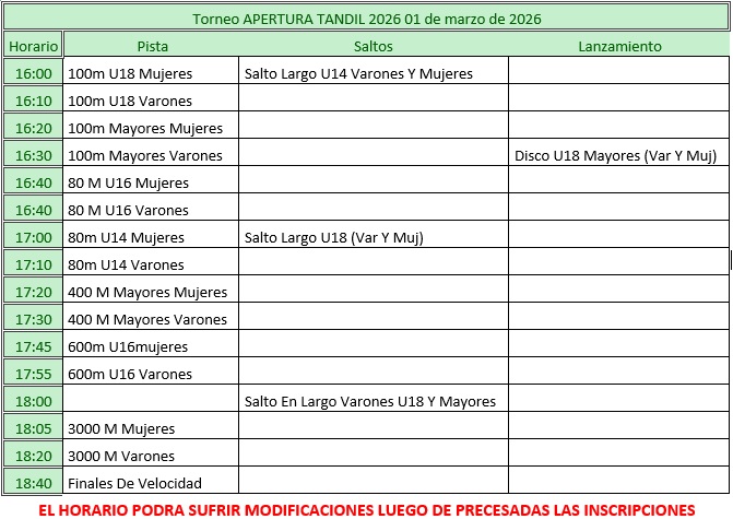 El próximo domingo 1 de marzo se realizará un nuevo torneo de pista.
